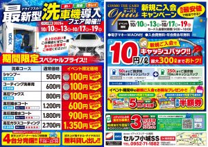 セルフ小城SSでは、10月よりお得なキャンペーンを開催いたしますので、ご案内させていただきます。
