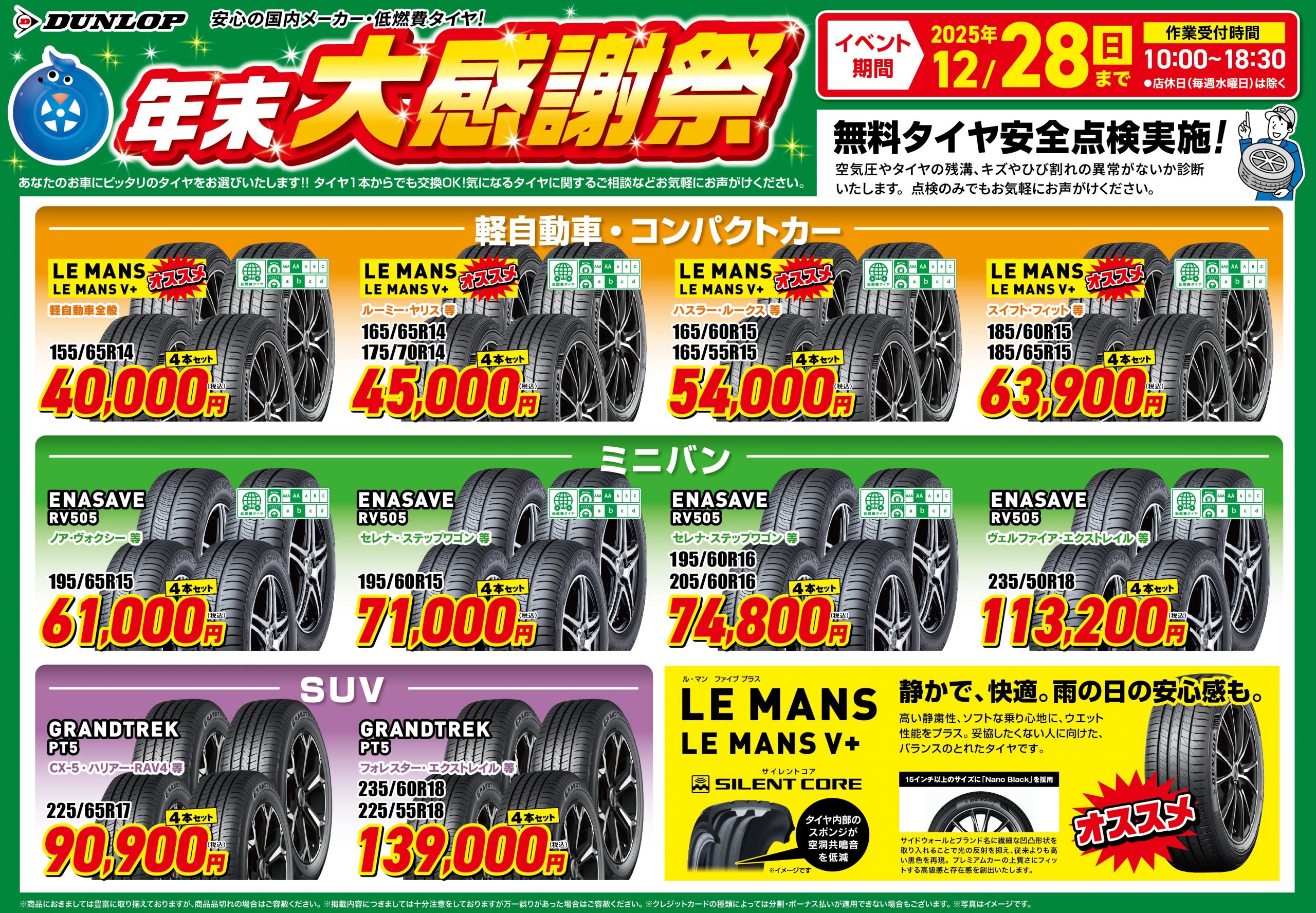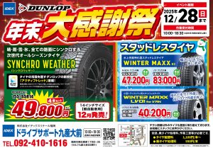 【ドライブサポート九産大前】愛車無料点検&タイヤ年末大感謝祭開催中!