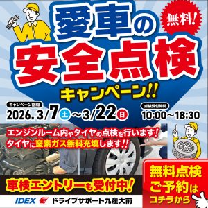 【ドライブサポート九産大前】3月安全点検キャンペーン開催中!