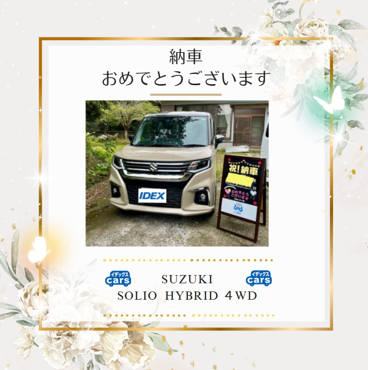 | 車中泊もするので快適性評価の高いソリオに決めました。 いろいろ尽力頂き感謝です。人生最後の車をイデックスで 決めて良かったです!! |