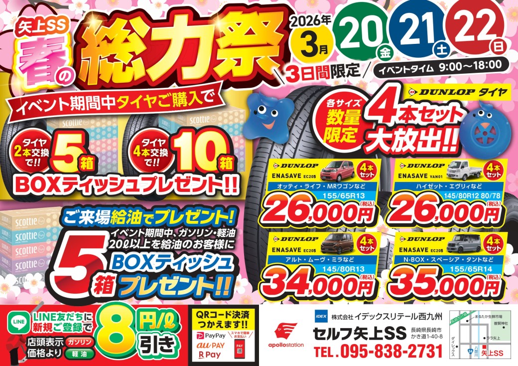 タイヤ2本ご購入でBOXティッシュ5個プレゼント